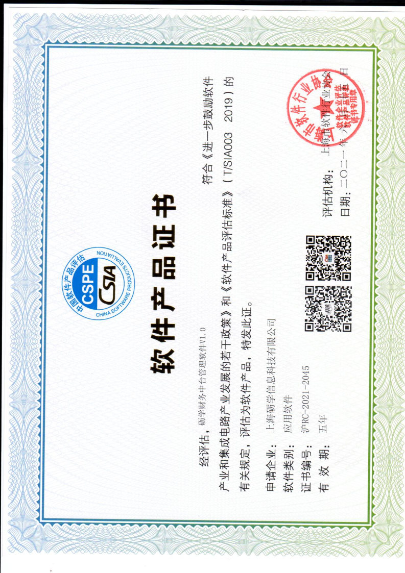 热烈祝贺我司获得上海市软件行业协会颁发的《软件企业证书》和“砺学财务中台管理软件”《软件产品证书》,成功获得双软企业认证。