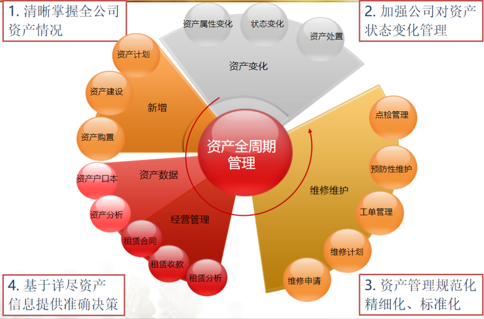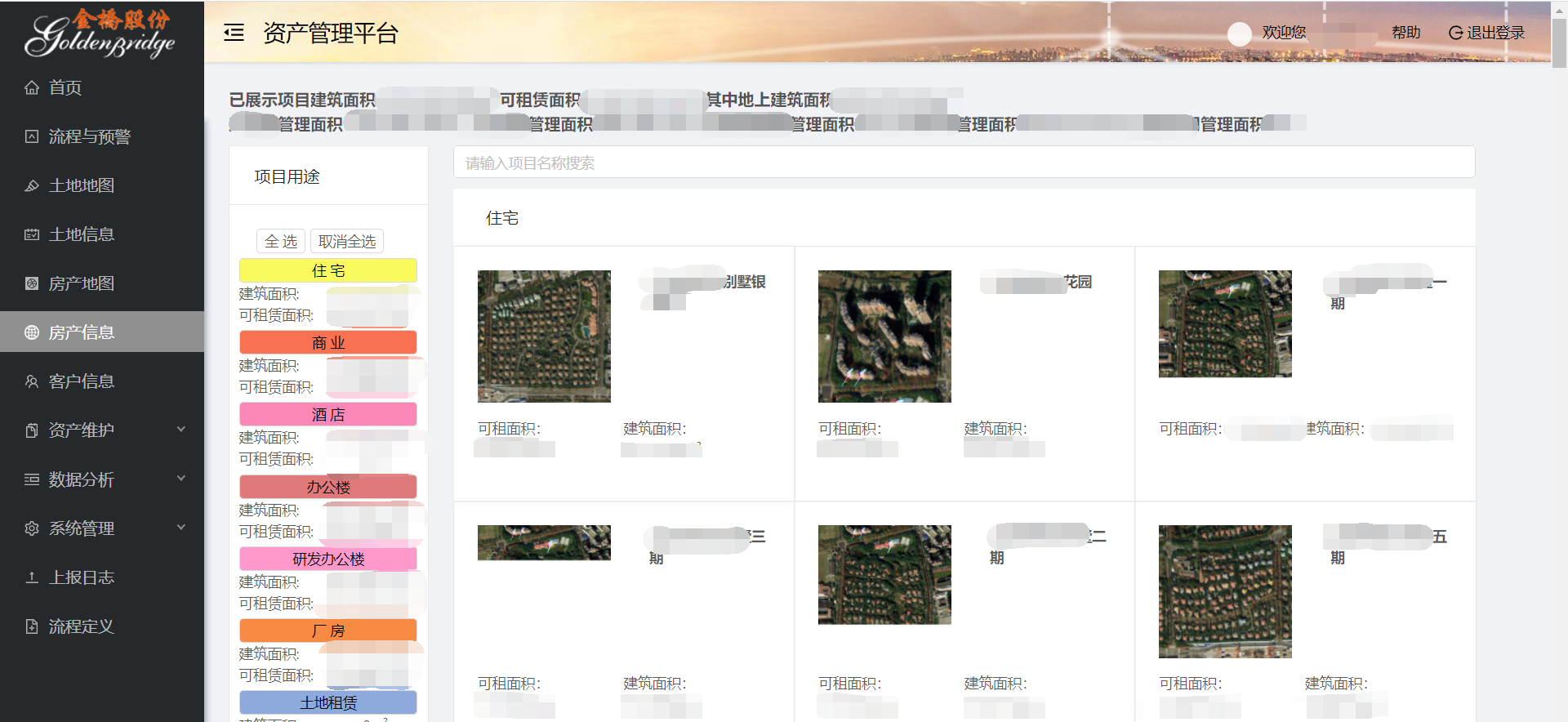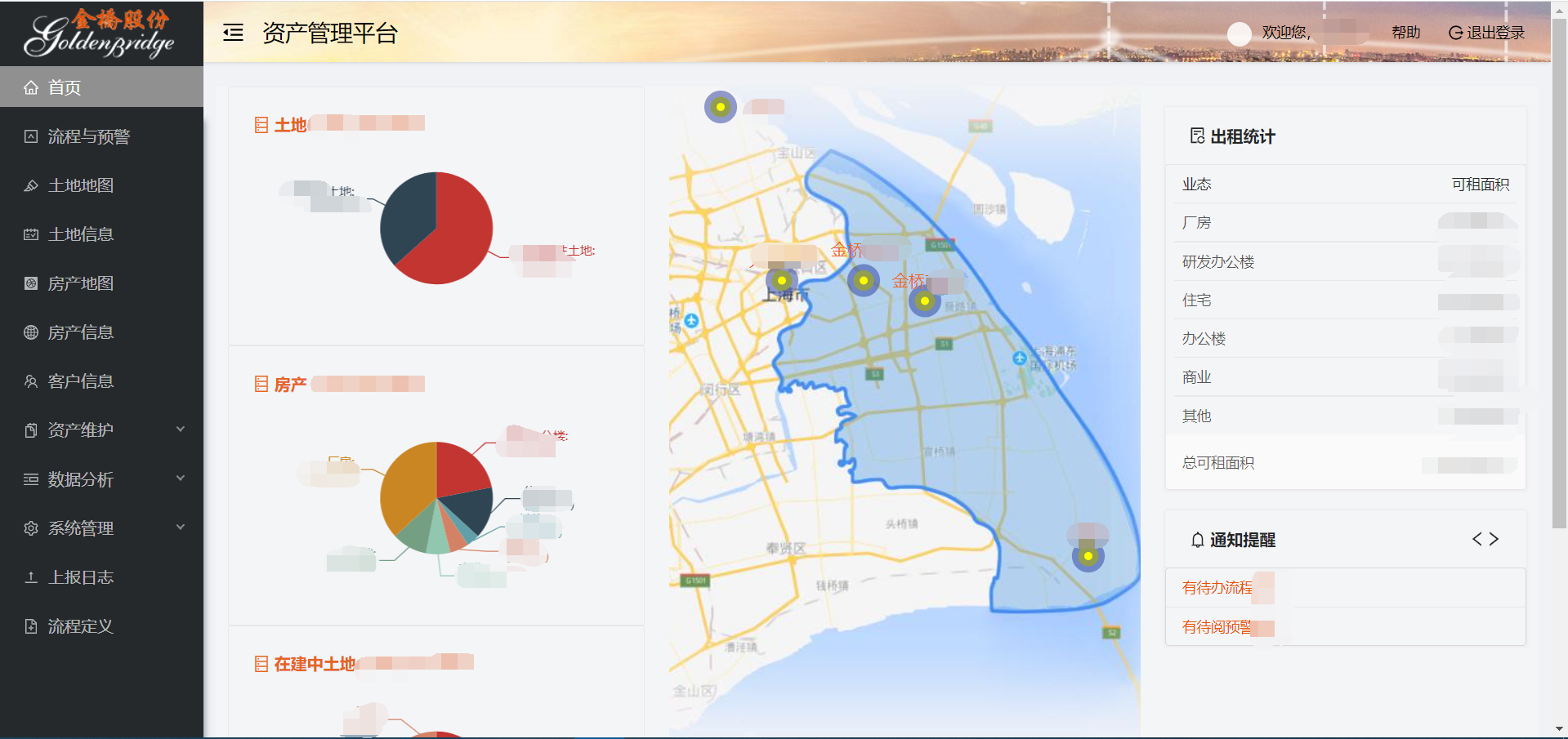 建设具有金桥股份特色的资产管理平台,实现资产的存量管理、资产运营过程可视化管理以及资产地图、数据挖掘分析等一体化的资产平台。