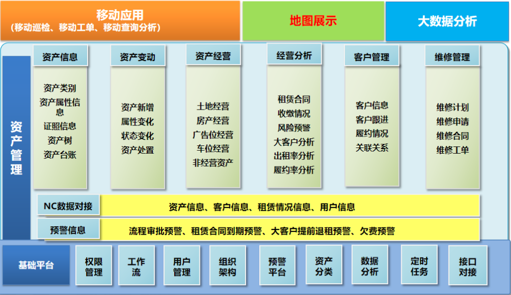 一:建设前企业应用的NC系统,缺乏对资产产权的管理,对资产的存量管理带来不便。故希望通过此次资产管理平台的搭建,有效的对资产产权进行管理。包括存量土地、土地租赁等。