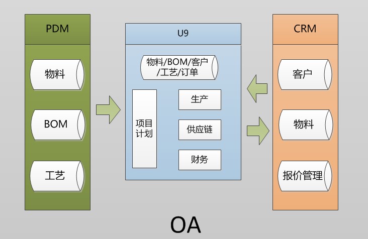 U9、PDM、CRM同时实施,并且进行数据相互传递