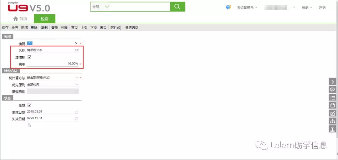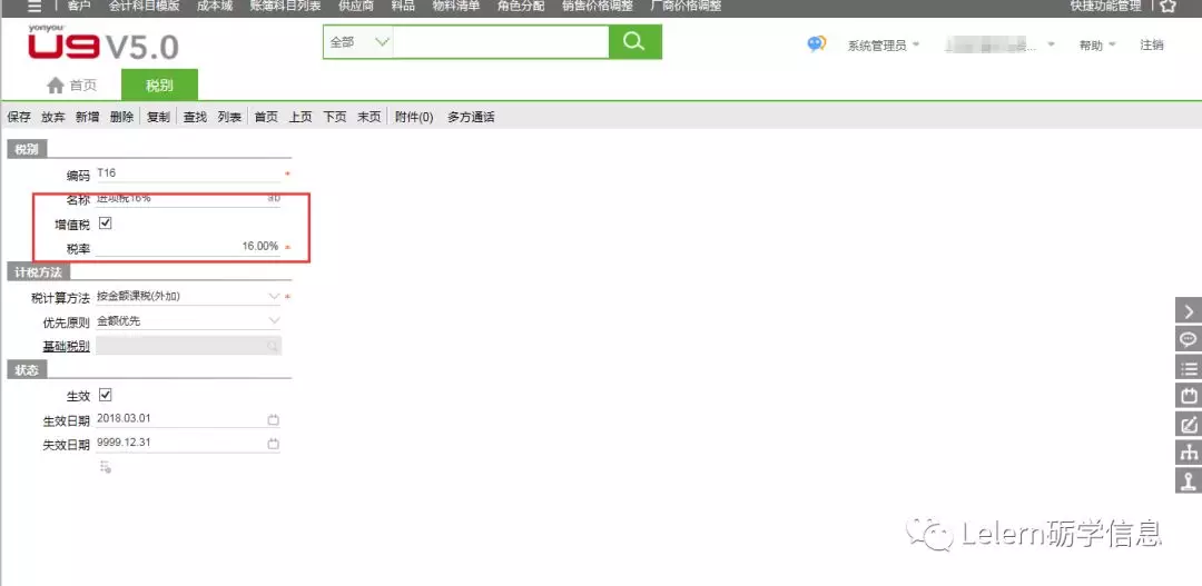 2.基础设置-税别,给税别维护税率,销项税为16%,进项税为16%