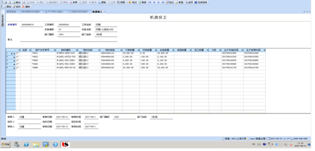 (2)工时统计及时准确:通过工时报工录入,从完工工时、到未完工工时、闲置工时等,所有类型的工时均有对应的录入方式,同时自动稽核当天考勤工时与录入工时的差异。工时程序同时考虑了支援工时,详细核算了不同组别互相支援的工时的数量及金额,为成本核算提供了精准的数据依据;