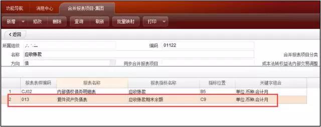 资产负债表上有些项目合并呈现了,如应收账款与应收票据合在一个项目上,可以在原来的往来表上添加一个项目,取应收账款和应收票据二者之和。然后为其添加合并报表项目并做好映射。